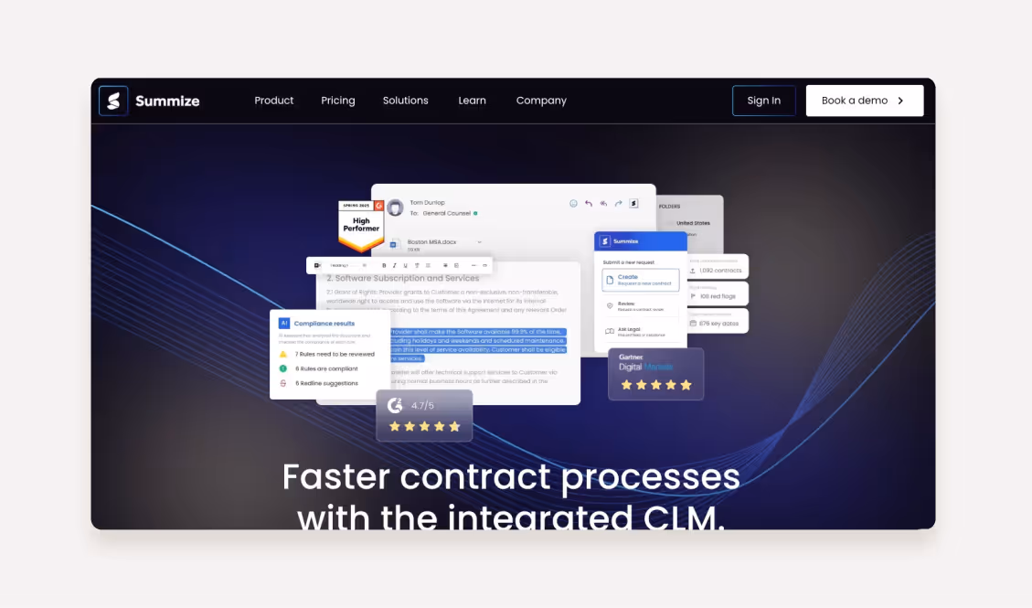 Summize is a Contract Lifecycle Management (CLM) solution designed to unite legal teams and business stakeholders so everyone can work better with contracts. It makes digital contracting processes simpler and smarter, from contract requests to the repository.